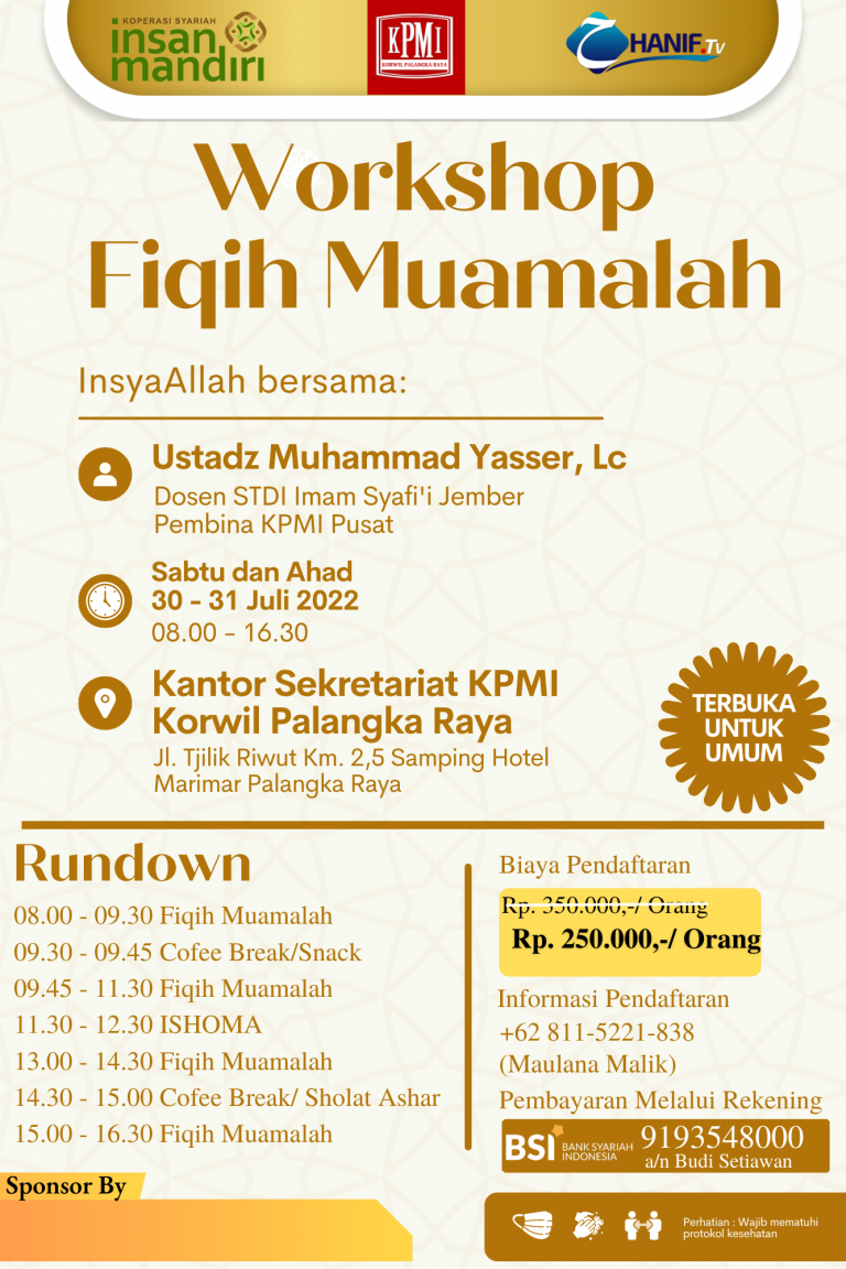 Kami mengajak, mari bergabung mengikuti workshop Fiqh Muamalah..